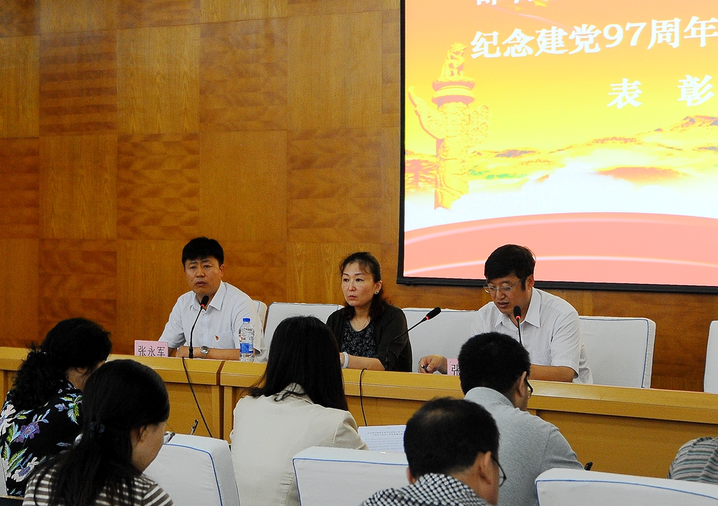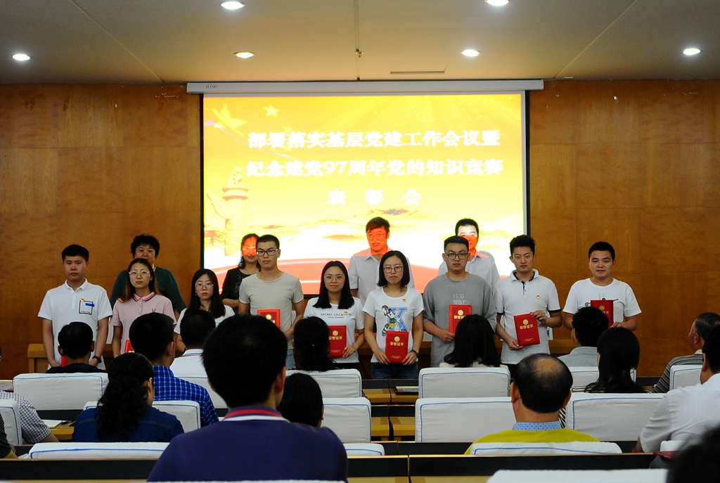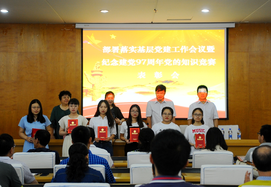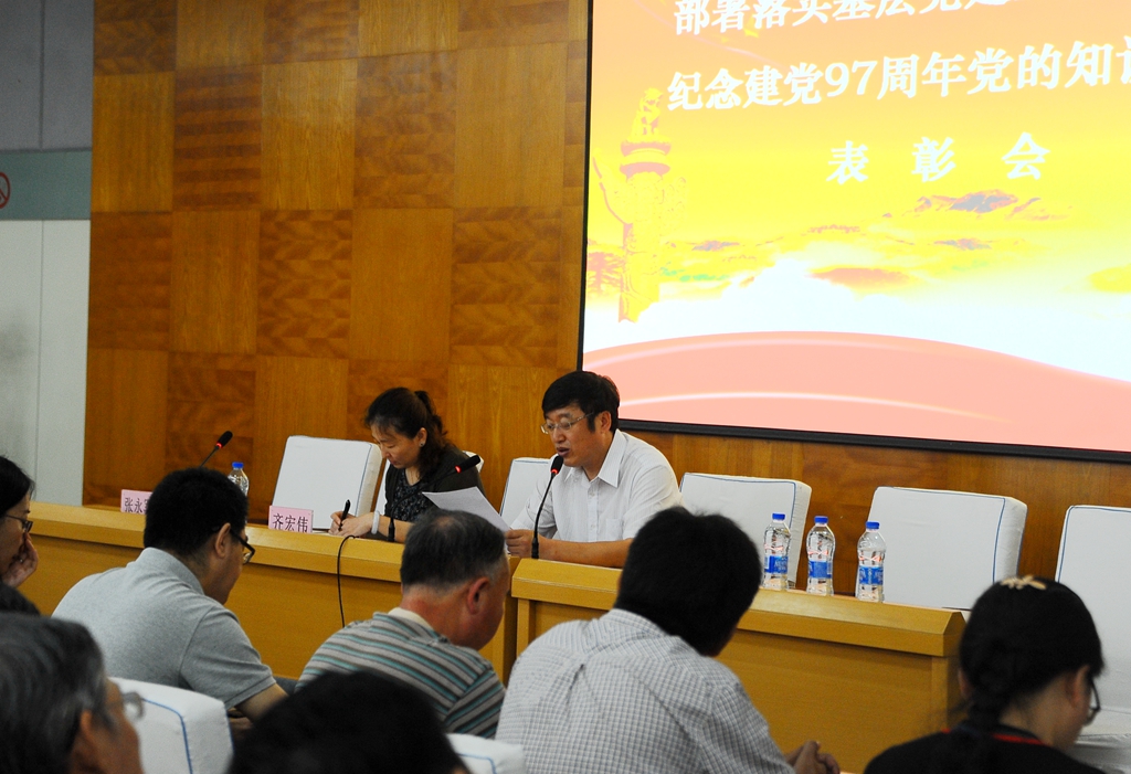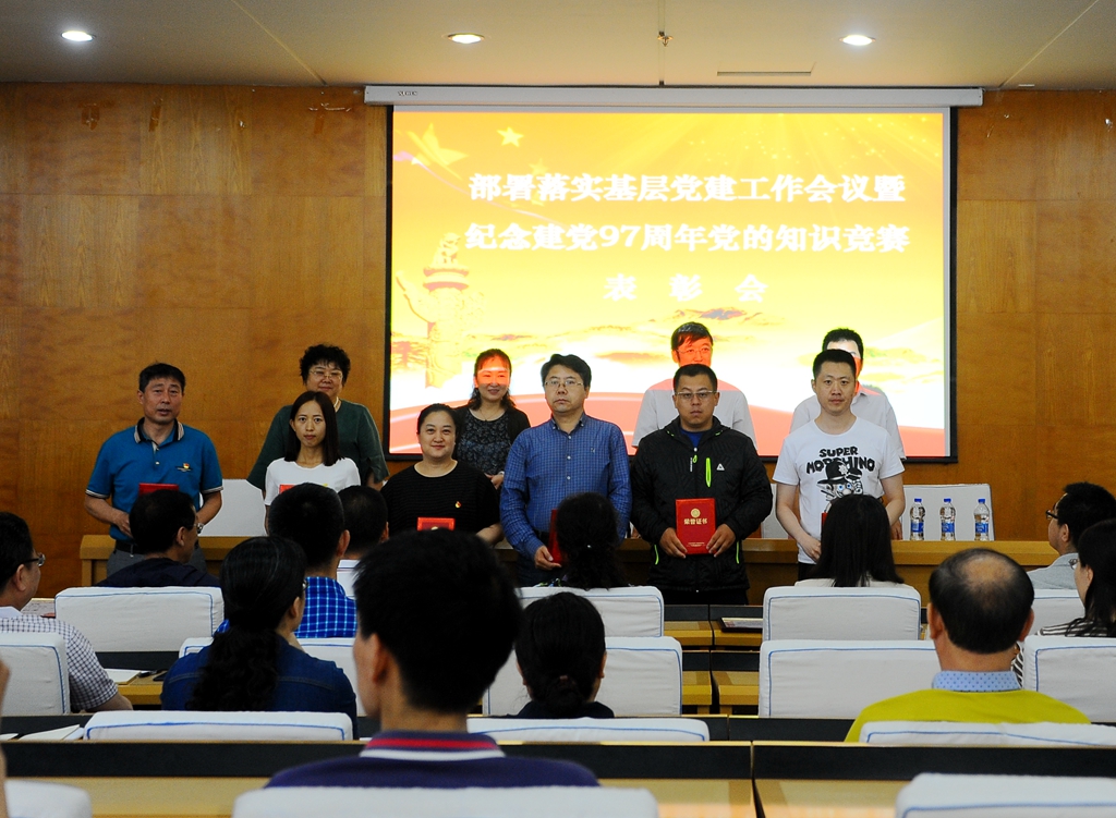 會上,學校黨委對在慶祝建黨97周年黨的知識競賽活動中取得佳績的組織和個人進行了表彰,齊宏偉宣讀了獲得“優秀組織獎”的12個黨委、直屬黨支部名單,張文治宣讀了獲獎的個人名單。