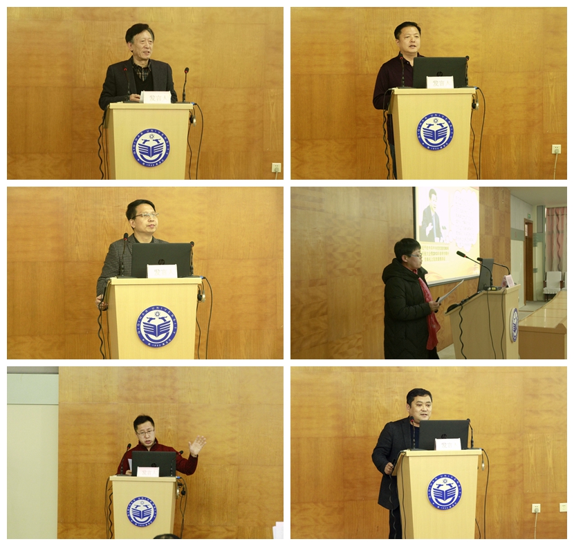 按照會議日程,校督學、碩士生導師王樹松教授,科研處副處長、碩士生導師伊全勝教授,黨委宣傳統戰部副部長、碩士生導師何強教授,馬克思主義學院思想道德修養與法律基礎教研部主任、碩士生導師王永明教授,馬克思主義學院中國近現代史綱要教研部主任、碩士生導師張春波副教授,哲學與法學學院政治學與行政學專業主任徐鳳江副教授,分別以《習近平新時代中國特色社會主義思想哲學方法論意蘊》《論精準扶貧、精準脫貧中的民主監督》《習近平“實事求是論”的實踐理性》《習近平青年社會責任觀的理論探源》《中國共產黨為國為民情懷的歷史演進與時代表征》《中國特色社會主義新時代社會主要矛盾的教學邏輯闡釋》為題,與參會領導、師生分享了他們一年來研究習近平新時代中國特色社會主義思想的最新理論成果。六位專家學者淵博厚重的學識,深入淺出的闡釋,嚴謹周密的邏輯,凝練質樸的語言,營造了非常濃郁的學術氛圍,拓展了大家對習近平新時代中國特色社會主義思想的認識,博得了現場觀眾的陣陣掌聲。