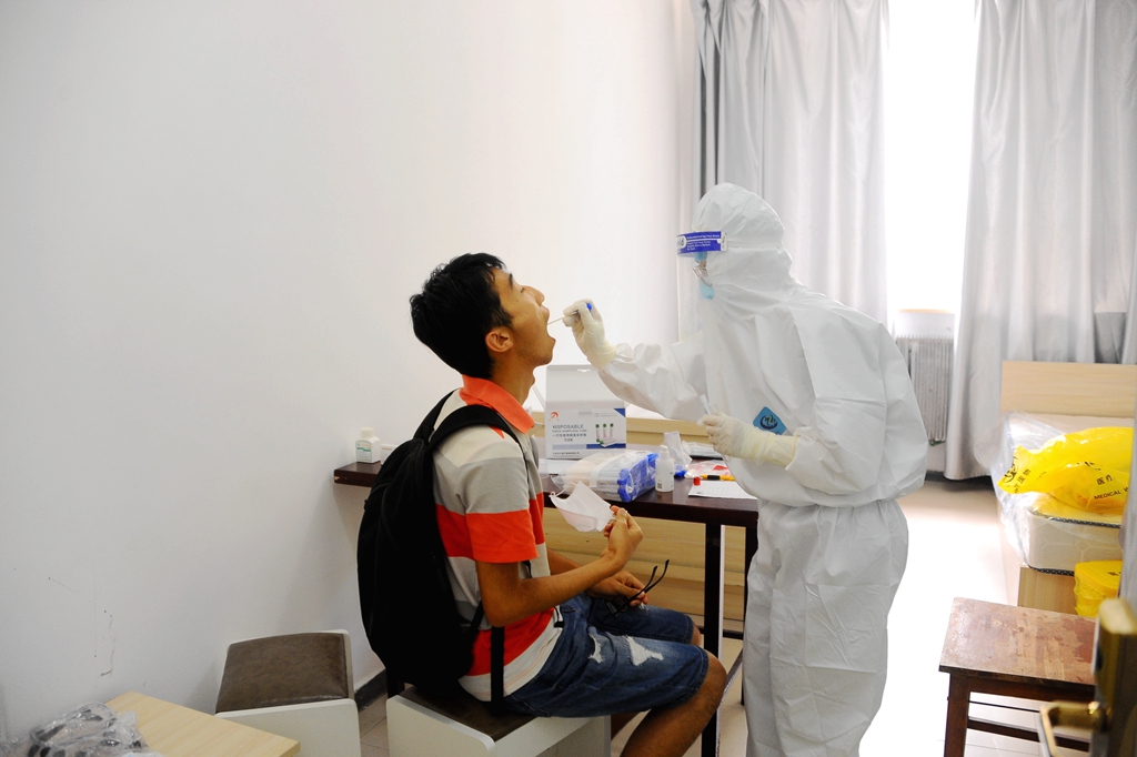 同學們在學生工作部(學生處)、校團委、招生就業處、保衛處等部門工作人員的引導下有序報到,嚴格執行進校門口“龍江健康碼”“完美校園”掃碼,工作人員為學生測溫、對學生進行手部消毒和行李消殺(對學生自駕進入校園車輛消毒),各學院學生工作干部在校門內迎接返校學生,陪伴學生到隔離觀察區樓下,學生二次掃碼測溫、登記、審核通過,學生進行核酸檢測后進入房間等程序。