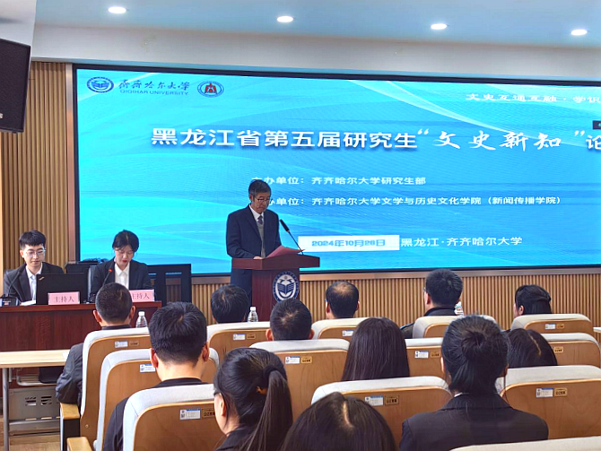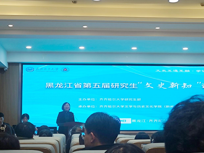 為加強黑龍江省各高校及科研院(所)研究生之間的學(xué)術(shù)交流,搭建自主探究的平臺,開拓研究生科研思路與學(xué)識視野,提升研究生創(chuàng)新能力與學(xué)術(shù)水平,10月26日,由齊齊哈爾大學(xué)研究生部主辦、文學(xué)與歷史文化學(xué)院(新聞傳播學(xué)院)承辦的黑龍江省第五屆研究生“文史新知”論壇在我校舉辦。本屆論壇采取線上與線下相結(jié)合的方式,來自省內(nèi)歷史學(xué)、中國語言文學(xué)、學(xué)科教學(xué)(語文)、學(xué)科教學(xué)(歷史)等不同學(xué)科(領(lǐng)域)的200余名專家、學(xué)者、碩士研究生參加了論壇。