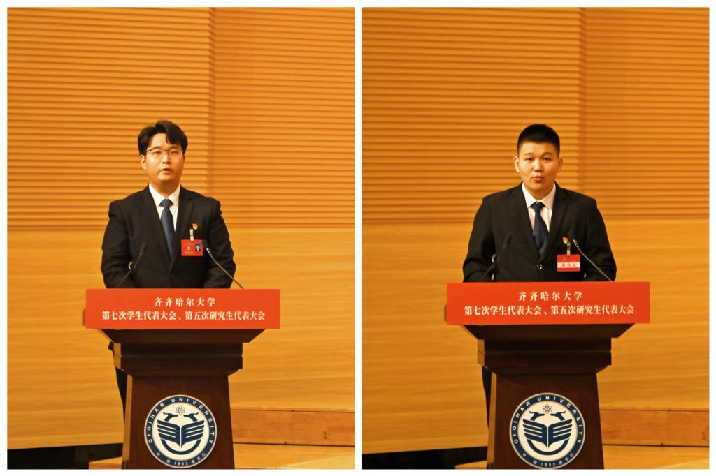 青春盛會(huì)擔(dān)使命,踔厲奮發(fā)正當(dāng)時(shí)。11月13日,我校第七次學(xué)生代表大會(huì)、第五次研究生代表大會(huì)在音樂(lè)廳召開(kāi)。校黨委班子成員丁宏、郝文斌、齊宏偉、張文治、王剛、叢喜權(quán)、馬文輝出席會(huì)議,團(tuán)齊齊哈爾市委書(shū)記孫坤出席會(huì)議并致辭,我校學(xué)生工作指導(dǎo)委員會(huì)相關(guān)職能部門(mén)負(fù)責(zé)同志,各學(xué)院主管學(xué)生工作領(lǐng)導(dǎo)、團(tuán)委書(shū)記,261名本科生代表、68名研究生代表參會(huì)。