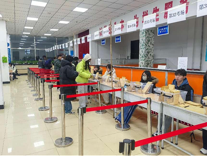 為進一步防范手機及新型智能產品作弊,確保考試安全,按照上級要求,學校全面落實配置智能安檢門、實現5G屏蔽全覆蓋、手機等智能設備不帶入考點封閉區域等政策要求。學校在就業指導中心服務大廳、體育館等大型場所設置了手機存放處及考前臨時休息區域,方便考生存取手機,100余名學生志愿者盡職盡責,為考生提供周到的服務,為考生安心考試提供保障。