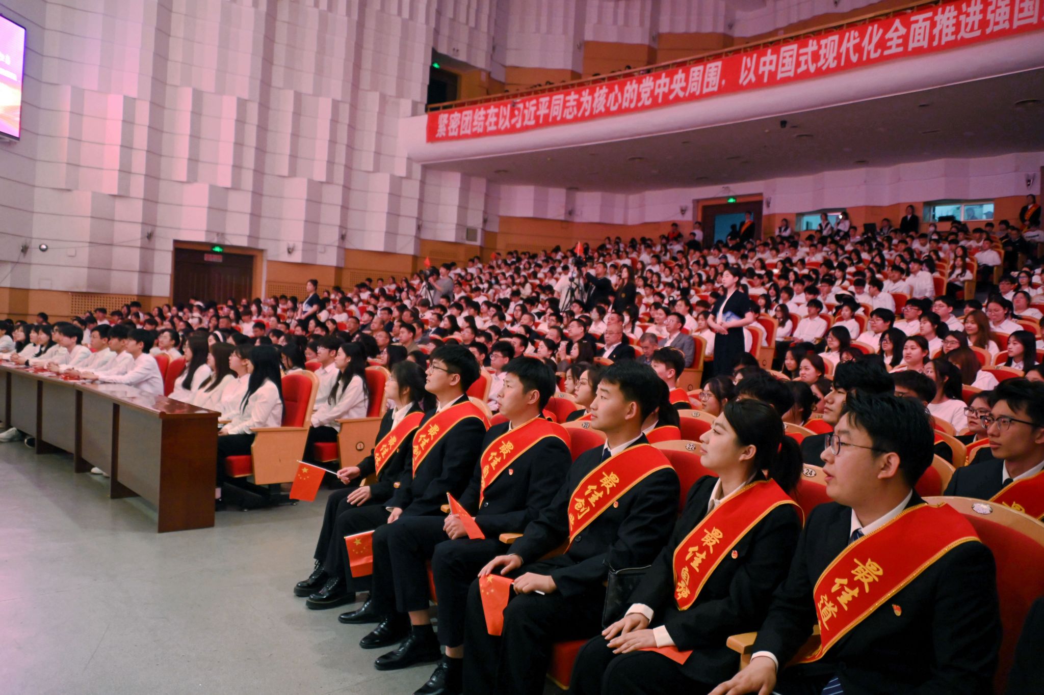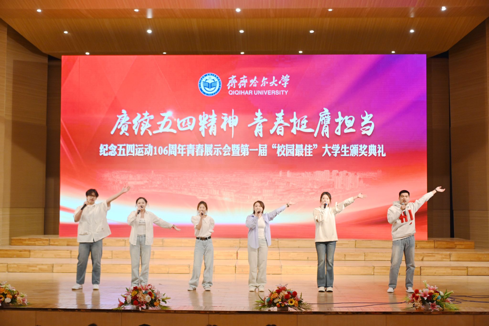 4月28日晚,學(xué)校紀(jì)念五四運(yùn)動(dòng)106周年青春展示會(huì)暨第一屆“校園最佳”大學(xué)生頒獎(jiǎng)典禮在音樂(lè)廳舉行?;顒?dòng)以“賡續(xù)五四精神禮贊青春榜樣”為主題,通過(guò)表彰在思想道德、專業(yè)學(xué)習(xí)、科技創(chuàng)新等領(lǐng)域表現(xiàn)突出的優(yōu)秀學(xué)子,激勵(lì)廣大青年傳承五四精神,勇?lián)鷷r(shí)代使命。校領(lǐng)導(dǎo)和師生代表4000余人線上線下參加活動(dòng)。