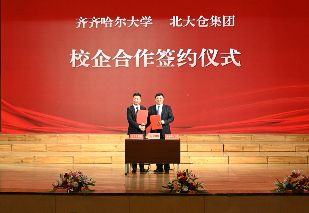 丁宏在致辭中回顧了北大倉集團與齊齊哈爾大學二十五年校企情誼,她盛贊北大倉集團“艱難創業仍堅持助學”的擔當,以及隋熙鳳總裁“勇于變革、奉獻社會”的企業家精神,這份堅守“詮釋了‘校企一家親’的深厚情誼”。并表示,希望雙方以此次簽約為新起點,深化產教融合、科研創新等合作,構建“企業出題、學校答題”的共贏模式。她勉勵廣大學子,要汲取奮斗力量,厚植家國情懷,用所學服務社會,“讓青春在永遠奮斗中閃光”。