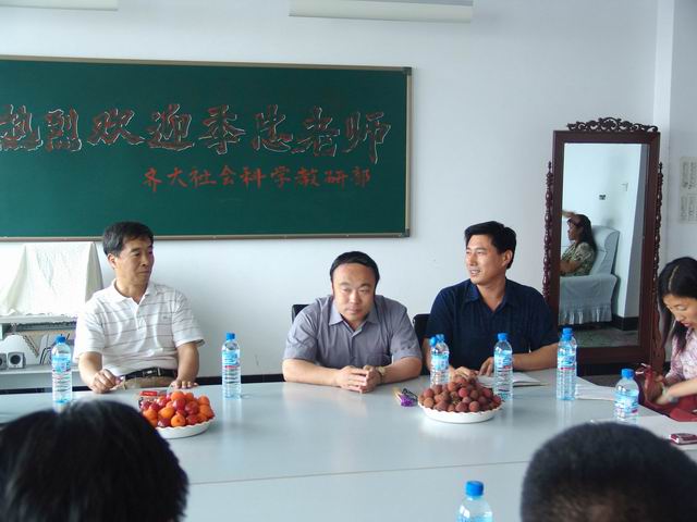 6月19日下午,季忠教授與社科部教師就“兩課”教學(xué)中的相關(guān)問(wèn)題進(jìn)行了座談,副校長(zhǎng)姜守訓(xùn)出席并講話。座談會(huì)由社科部主任曲士英教授主持,宣傳部、政治系等部門(mén)的領(lǐng)導(dǎo)和教師也參加了座談。姜守訓(xùn)副校長(zhǎng)在座談會(huì)上講了話。他首先代表學(xué)校對(duì)季忠教授應(yīng)邀來(lái)訪講學(xué)表示歡迎和感謝,他在季忠教授簡(jiǎn)要介紹了學(xué)校發(fā)展概況后指出:深化“兩課”教學(xué)改革,教師是關(guān)鍵。教師必須處理好教與學(xué)的關(guān)系,要不斷夯實(shí)理論根基,不斷提高自身素質(zhì),不斷更新知識(shí)結(jié)構(gòu)。要積極投入到“兩課”教學(xué)改革,提高教學(xué)質(zhì)量,為培養(yǎng)全面發(fā)展的高素質(zhì)人才服務(wù)。在座談中,季忠教授談到了“兩課”教學(xué)中需要處理好的關(guān)系,并結(jié)合多年從事“兩課”教學(xué)與科研的經(jīng)歷向與會(huì)教師暢談了工作中的感悟與體會(huì)。