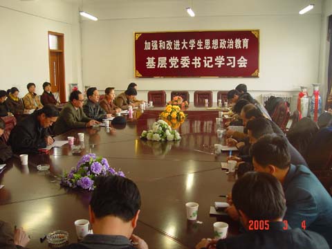 學(xué)工部(處)長王剛傳達(dá)了《胡錦濤同志在全國加強(qiáng)和改進(jìn)大學(xué)生思想政治教育工作會(huì)議上的講話》、宣傳部副部長田志峰傳達(dá)了《李長春同志在全國加強(qiáng)和改進(jìn)大學(xué)生思想政治教育工作會(huì)議上的講話》和《陳至立同志在全國加強(qiáng)和改進(jìn)大學(xué)生思想政治教育工作會(huì)議上的講話》。校黨委書記陳承貴主持了會(huì)議。