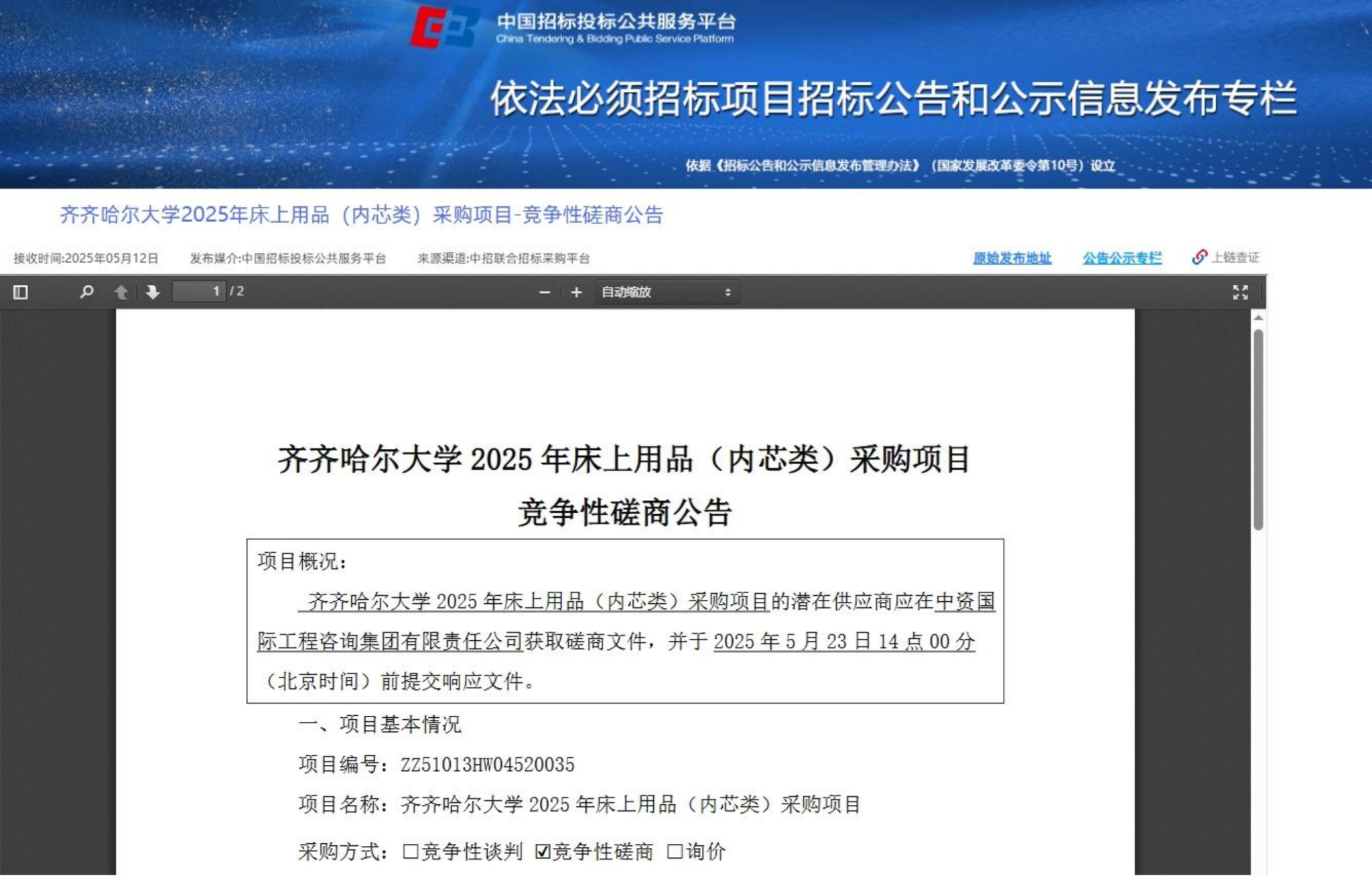 下一條:齊齊哈爾大學2025年床上用品(單罩類)采購項目競爭性磋商公告(轉自中國招標投標公共服務平臺)