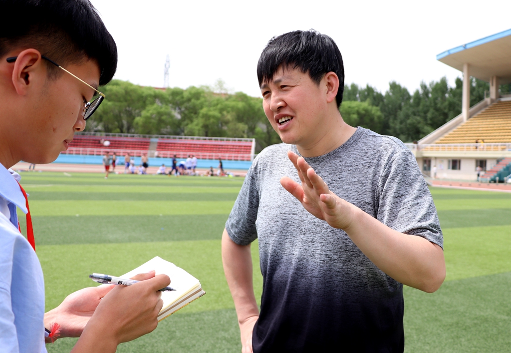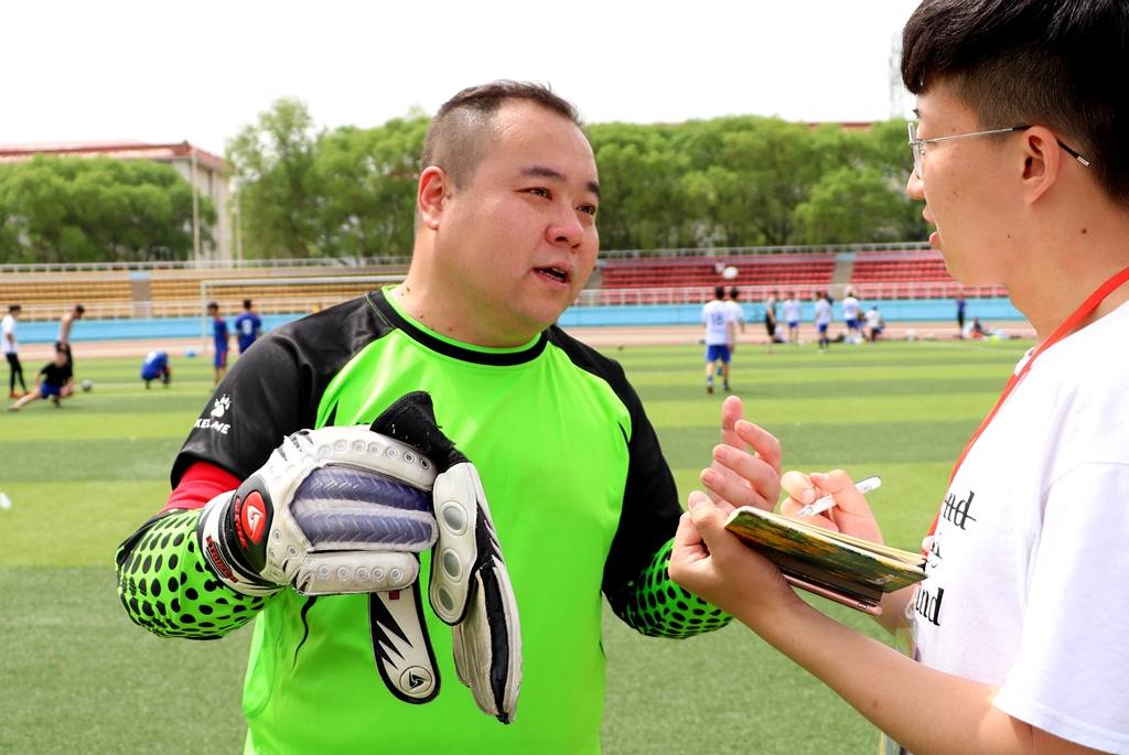 記者還采訪到了保衛(wèi)處副處長杜海權(quán)老師,他也作為學(xué)校教職工的代表參加了本場比賽。“我們教工隊(duì)已經(jīng)有幾年沒踢過比賽了,今年又被組建起來,感覺很好。”杜老師說,“本場足球賽從大方面來說可以增進(jìn)友誼,從小方面來說可以運(yùn)動健身,而且這次足球賽還有一個目的,就是為了給即將畢業(yè)的大四學(xué)生送別,希望他們在以后的工作和生活中能拿出在賽場上的精神去體驗(yàn)生活,祝愿他們未來能夠取得成功。”
