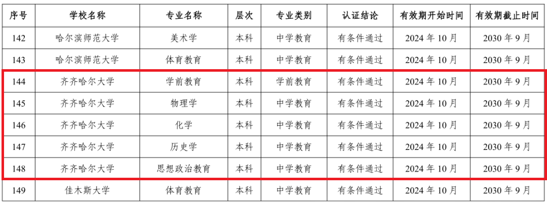 近日,教育部辦公廳發布《關于公布2024年通過普通高等學校師范類專業認證及認證中期審核專業名單的通知》(教師廳函〔2024〕20號),我校學前教育、物理學、化學、歷史學、思想政治教育等5個專業通過教育部師范類專業第二級認證,認證結論有效期為2024年10月至2030年9月;生物科學專業通過中期考核,繼續保持有效期至2027年8月。
