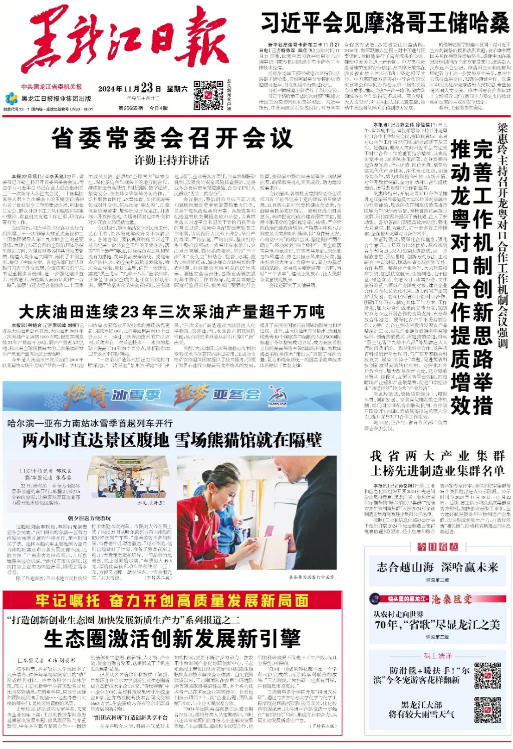 2024年11月23日,黑龍江日報以《生態圈激活創新發展新引擎》為題在頭版報道了環齊齊哈爾大學創新創業生態圈建設工作。