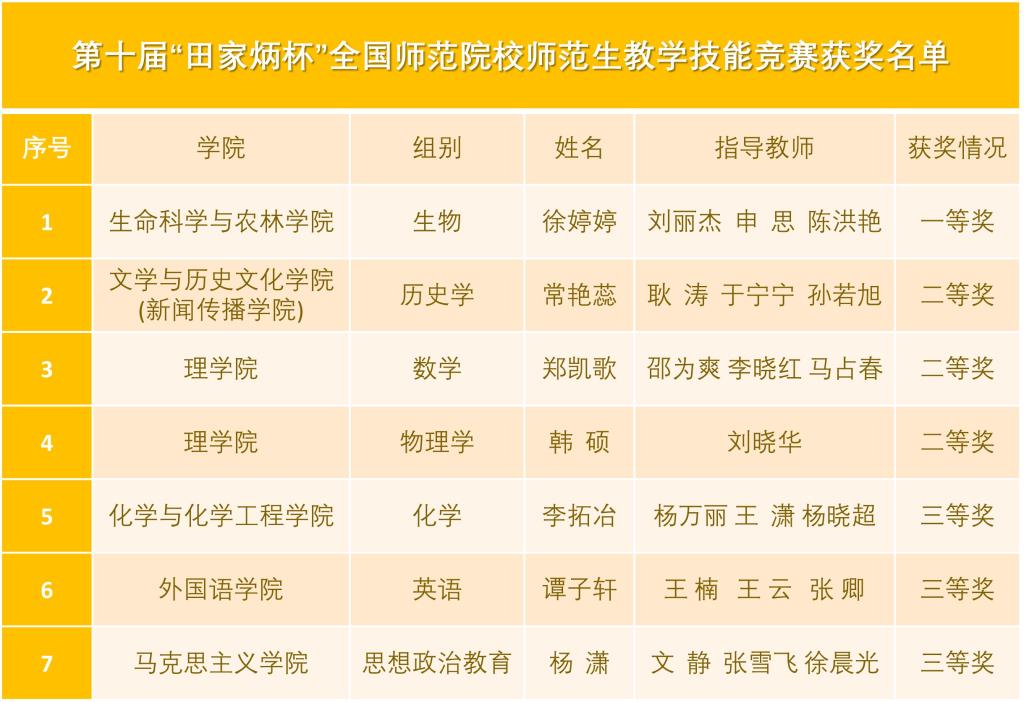喜報!我校學(xué)生在第十屆“田家炳杯”全國師范院校師范生教學(xué)技能競賽中榮獲佳績