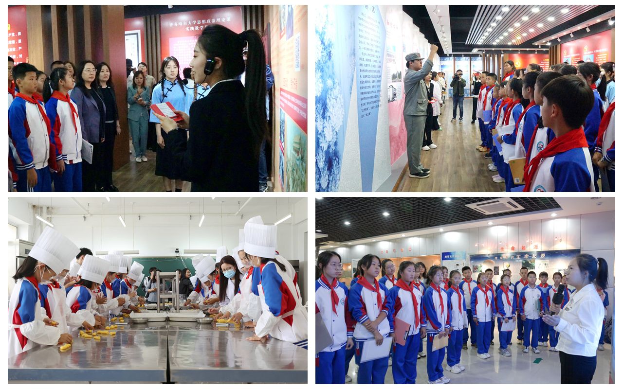 鐵鋒區(qū)人民小學(xué)學(xué)生來到延德樓焙烤工藝實驗室,開展“玉米黃金酥制作”勞動教育課程。小學(xué)生與大學(xué)生協(xié)作完成玉米黃金酥制作,通過勞動親身體驗“一粥一飯當(dāng)思來之不易”的深刻內(nèi)涵。在等待烘焙完成間隙,師生們走進生命科學(xué)館,聆聽由大學(xué)生講解員講述的“守護黑土 筑夢家國”與“鶴魂青春 榜樣力量”微思政課,以習(xí)近平生態(tài)文明思想為指導(dǎo),將“綠水青山就是金山銀山”的生態(tài)智慧與“家國同心”的情懷擔(dān)當(dāng)有機融入科普教育。