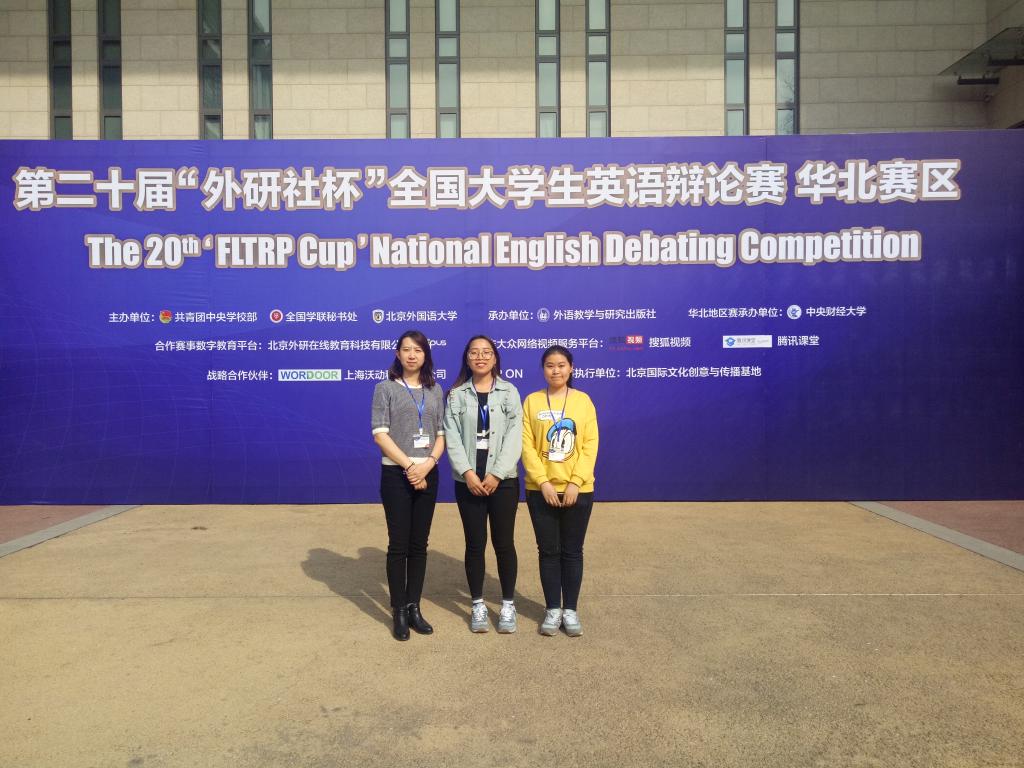 為了進一步豐富大學生校園文化,引導和幫助學生強化英語學習意識、培養國際眼光、提高獨立思考、語言表達、組織協調能力,4月2日至4月4日第二十屆“外研社杯”全國大學生英語辯論賽華北地區決賽在中央財經大學舉行,在學校和學院領導的大力支持下,我校外國語學院英語專業學生陳煒、陳彥宇代表我校參加了本次比賽并榮獲三等獎,外國語學院英語系孫舒老師被評為“優秀評委”。