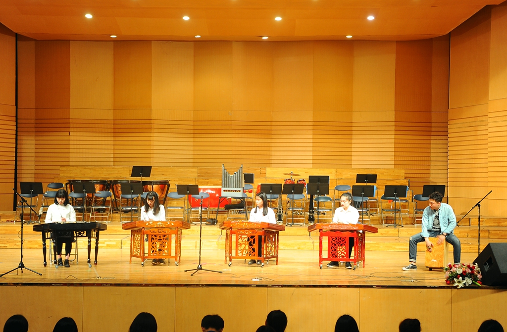 5月16日晚,2017“高雅藝術進校園”——東北農業大學民族器樂專場音樂會在我校音樂廳隆重奏響。來自東北農業大學藝術學院青年民族管弦樂團的60余名師生用他們的精湛技藝為我校師生送來一場高水平的音樂盛宴。我校黨委副書記齊宏偉,學校辦公室主任張德慶,黨委宣傳統戰部部長王曉梅,學生工作部(學生處)部(處)長姜波,黨委宣傳統戰部副部長何強,音樂與舞蹈學院黨政班子全體和1000余名師生共同欣賞了演出。東北農業大學藝術學院副院長于洋等領導一起觀看了演出。