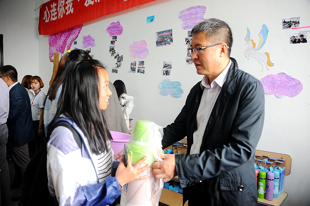 “愛心超市”能夠“經營”得如此紅火,除了同學們的歡迎,還有來自學校領導的關心和大力支持。5月31日,校黨委副書記蓋元臣、校黨委副書記齊宏偉、常務副校長鄭喜群、副校長王剛、紀委書記姜國慶五位校領導來到“愛心超市”親自指導工作,了解“愛心超市”的運營狀況,與前來領取物品的同學親切交談,還熱情地為同學們發放物品,使同學們感受到了來自學校領導的愛心和關懷。