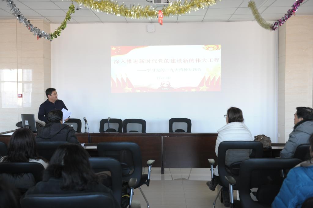 在西區1教615會議室,校黨的十九大精神宣講團成員、科技處副處長、博士、碩士生導師伊全勝教授以《學習貫徹黨的十九大精神推進高水平大學建設》為題,從黨的十九大概況、主題,黨的十九大提出的新理念、新判斷、新目標,扎實推進我校作風整頓工作、推進有特色高水平教學研究型綜合大學建設等內容對黨的十九大精神進行了全面、深入的講解。他指出,學習黨的十九大精神,要在學懂弄通上下功夫,要在理論聯系實際上下功夫。要適應新時代中國特色社會主義的發展要求,明確歷史方位,增強“四個意識”,勇于擔當,務實干事,在推進高水平大學建設中,堅決貫徹落實黨的十九大確定的大政方針、發展戰略、政策措施。現代教育技術中心全體教職工參加了宣講活動。