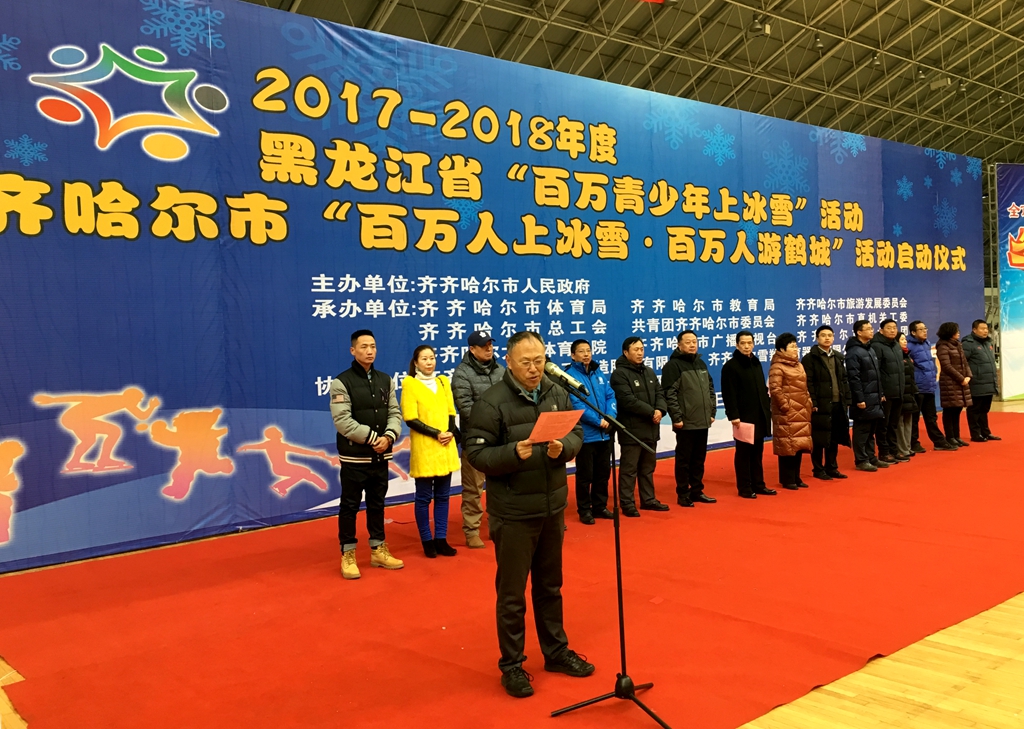 12月3日上午,2017—2018年度黑龍江省“百萬青少年上冰雪”活動暨齊齊哈爾市“百萬人上冰雪百萬人游鶴城”活動啟動儀式在市體育運動管理中心速滑館舉行,我校體育學院院長姚大為出席開幕式。