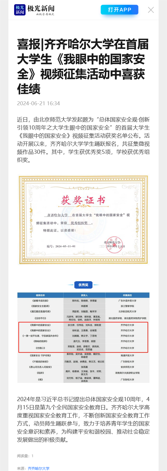 下一條:【極光新聞】喜報!齊齊哈爾大學在第17屆全國大學生結構設計競賽黑龍江省分賽區取得優異成績