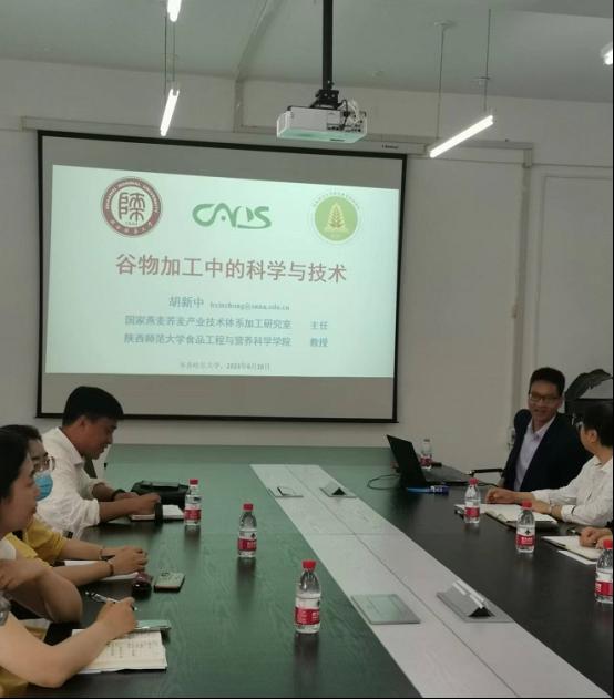 在會上,胡新中教授首先介紹了陜西師范大學食品工程與營養科學學院及其團隊的基本情況,隨后毫無保留地分享了其在谷物加工方面的寶貴經驗,尤其就燕麥食品加工與技術創新、蕎麥功能食品加工與技術創新、小麥面制主食加工技術創新、天然乳化劑多糖構效關系、谷物加工中抗性淀粉形成等相關方面的研究方法和研究成果進行了詳細全面的介紹。最后,胡新中教授就如何從生產中發現“科學問題”、如何有效實現科技成果轉移轉化等方面做了詳細的闡述。